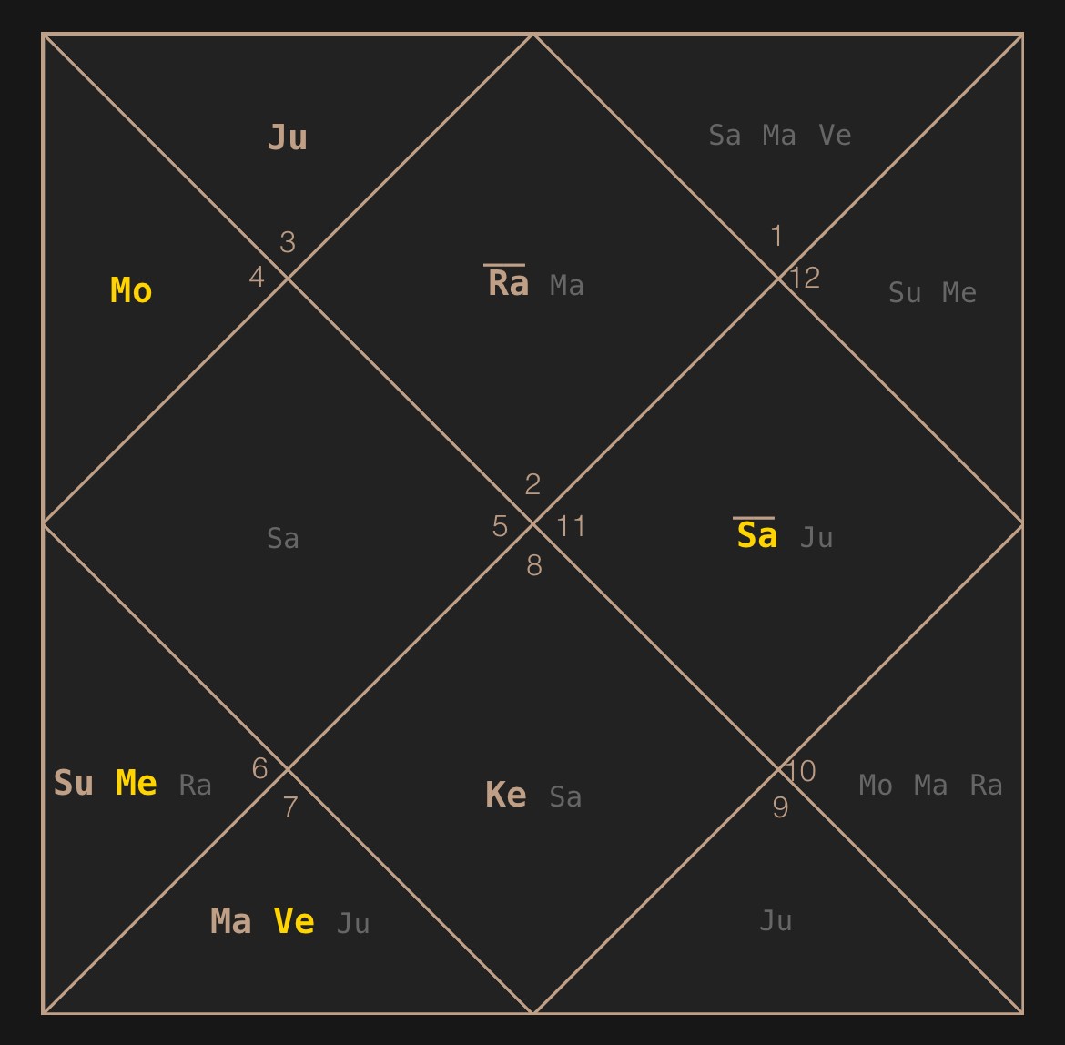 В 1-м доме мы видим лунный узел Раху и восходящий знак Тельца.