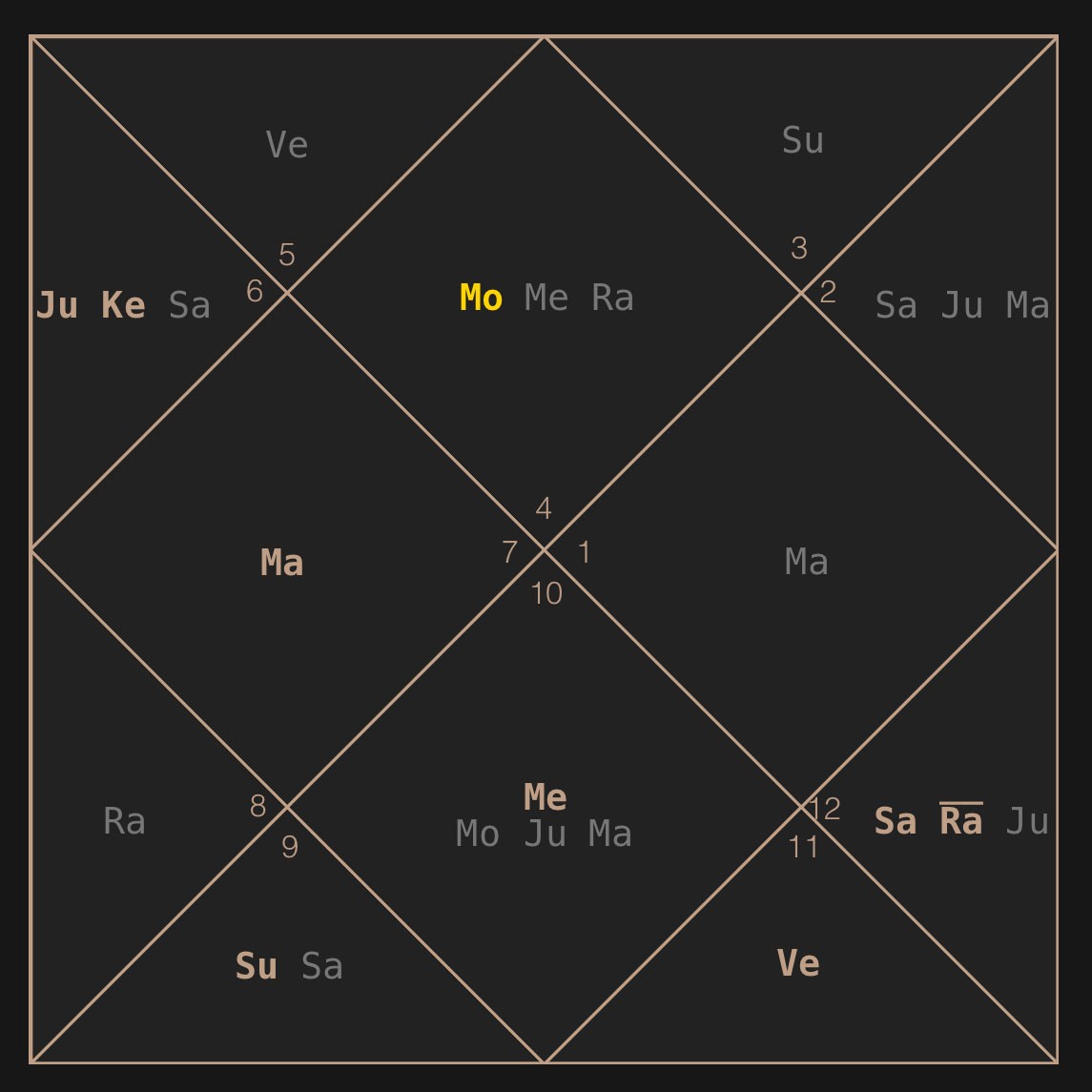 What else is interesting to note in his birth chart is the active 3rd and 9th houses. He has Jupiter in the 3rd house, and Saturn (the planet of global achievements) and the lunar node Rahu in the 9th house.