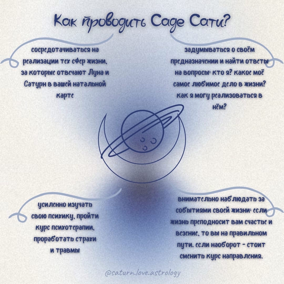 При платной подписке на saturn.love вы получаете подробное описание своего Саде Сати: точные даты, указания по проведению в соответствии с натальной картой. Самое время задуматься о смысле своей жизни и поискать ответ?